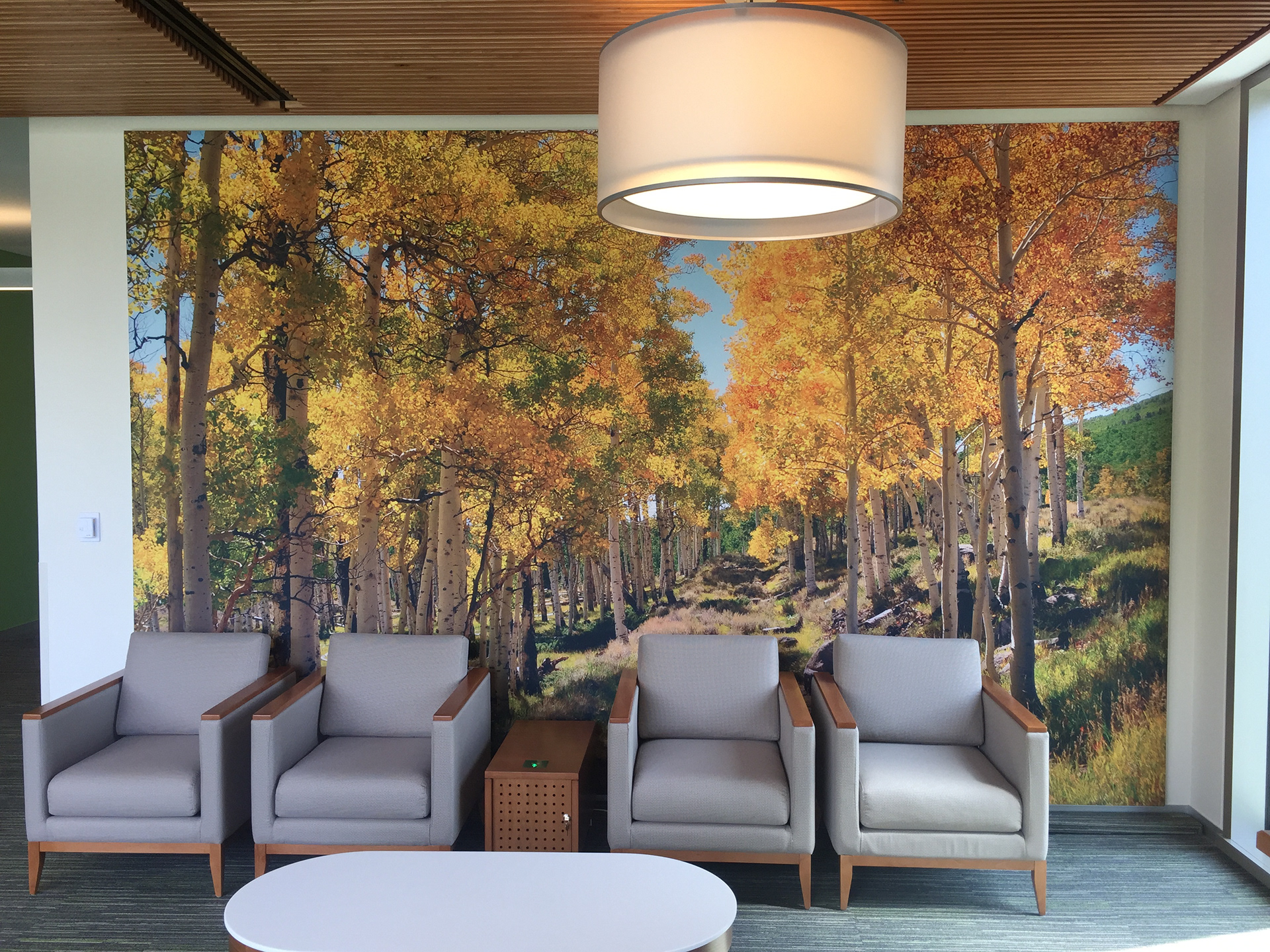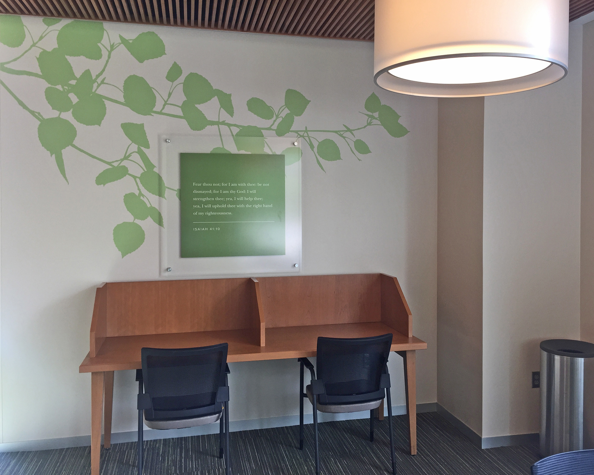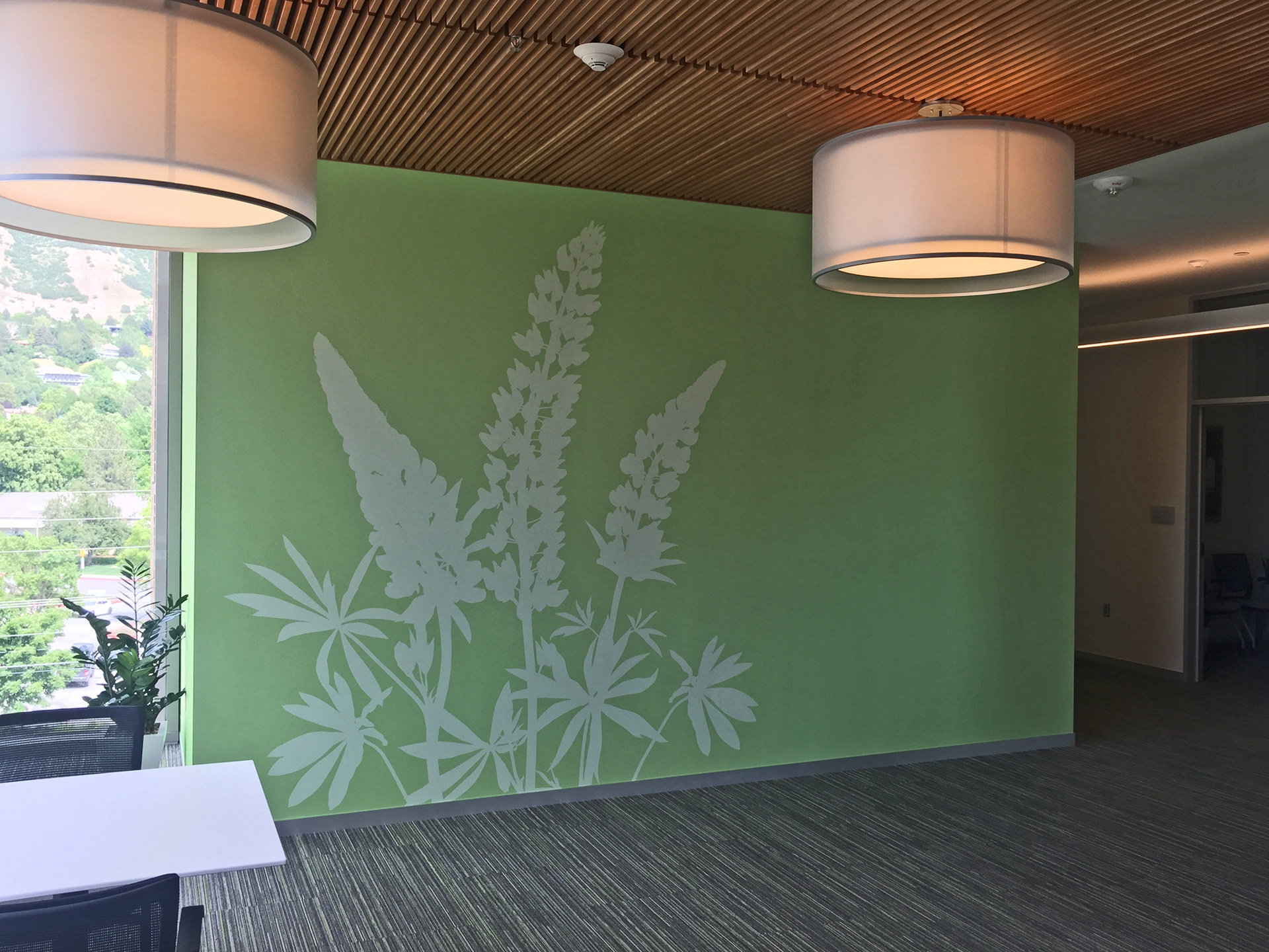 The spaces were designed to the scale of the architectural plans for planning and client approval. The graphics were printed on an architectural quality vinyl with acrylic stand-offs supported by chrome mounts.