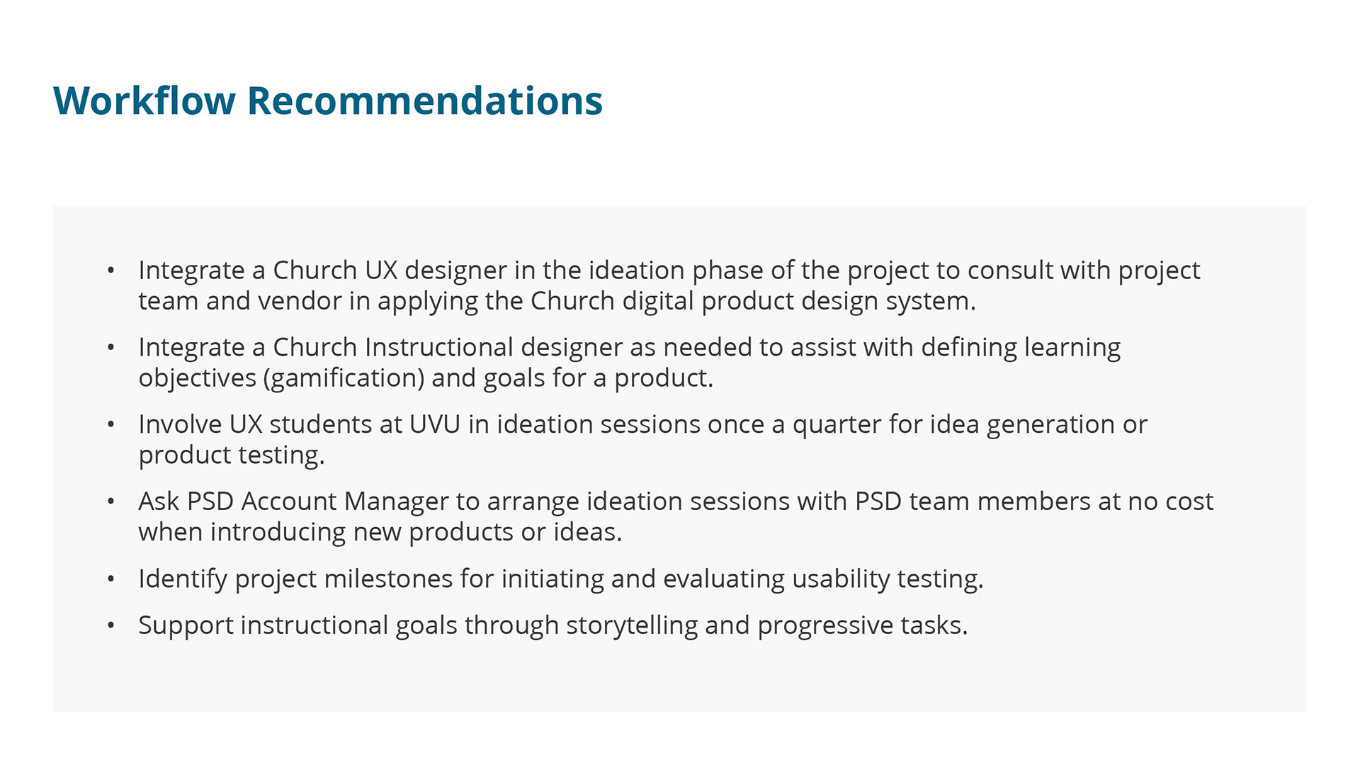This artifact illustrates the application of human-centered design and formative evaluation within a faith-based digital product. By adapting usability testing methods to a sacred storytelling context, the project bridged narrative intent with interaction design practice. The process exemplifies how UX research, instructional design, and media production can converge to create meaningful, user-informed religious education tools.